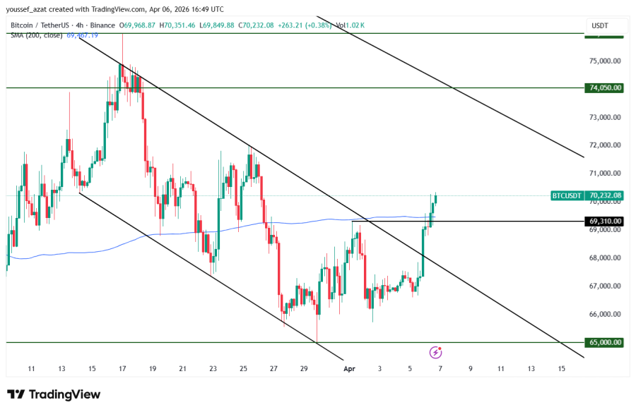 إتجاهنا المفضل: مراكز شراء أعلى مستويات 69300 مع استهداف 72000 كهدف أول ثم 76000 كهدف ثاني