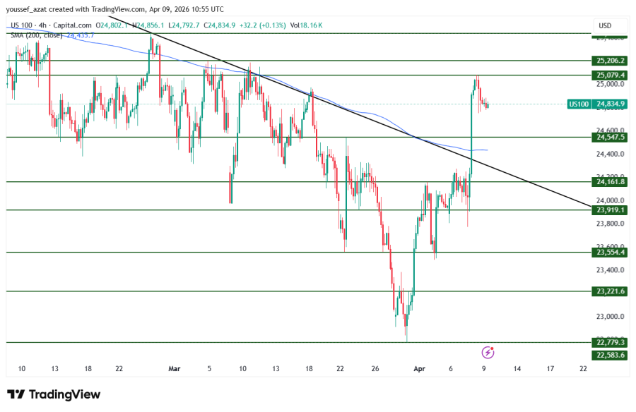 استطاع الناسداك إختراق خط الإتجاه الهابط من قمة شهر مارس الماضي مع إختراق مستويات المقاومة 24550 ليكون متوقع له مواصلة الصعود ليصل لمستويات 25200 ومن ثم مستويات 25500