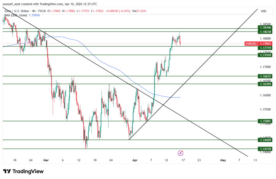 The EUR/USD pair is holding above the support level of 1.1740 and above the 200-period moving average on the four-hour timeframe, and is expected to continue its upward movement towards the 1.1840 level. If it breaks above this level, it will head towards the 1.1930 level.