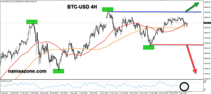 أما فى حالة كسر السعر للقاع السابق المتمثل فى 50.000 دولار، وهي مستويات دعم فنية ونفسية قوية، سوف نشهد تغير فى الإتجاة العام ، والدخول فى مرحلة تصحيح على المدي المتوسط ، وإستهدف مستويات الـ 44.000 ثم الـ 40.000 .