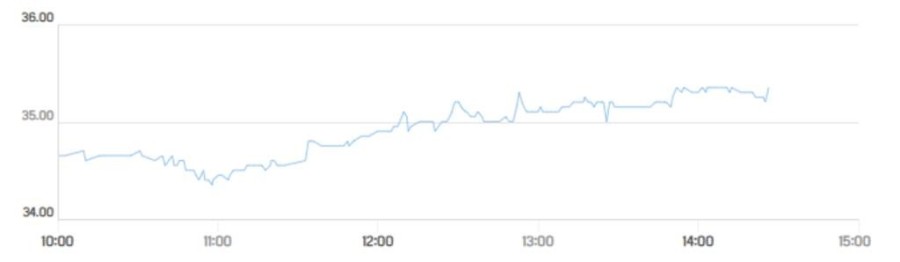 وبنهاية تعاملات أمس، استقر السعر عند 34.65 درهم، لتكتمل صورة هذا النشاط الإيجابي في جلسة اليوم بوصوله إلى 35.30 درهم، متجاوزاً بذلك كافة مستوياته السابقة خلال هذه الفترة.