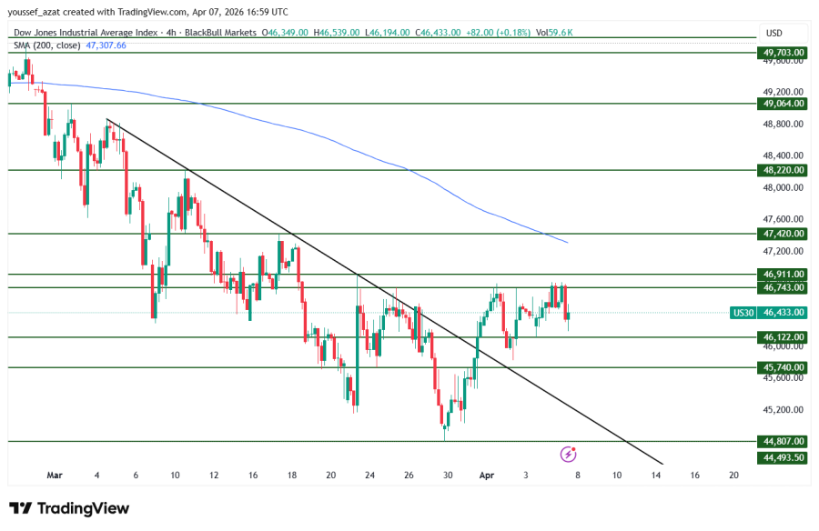 استطاع مؤشر الداو جونز إختراق خط الإتجاه الهابط من قمة الشهر الماضي مع إختراق مستويات المقاومة المحورية 45750 والثبات اعلى مستويات 46100، ليكون متوقع للمؤشر مواضلة الصعود لمستويات 46900 ومن ثم مستويات 47400