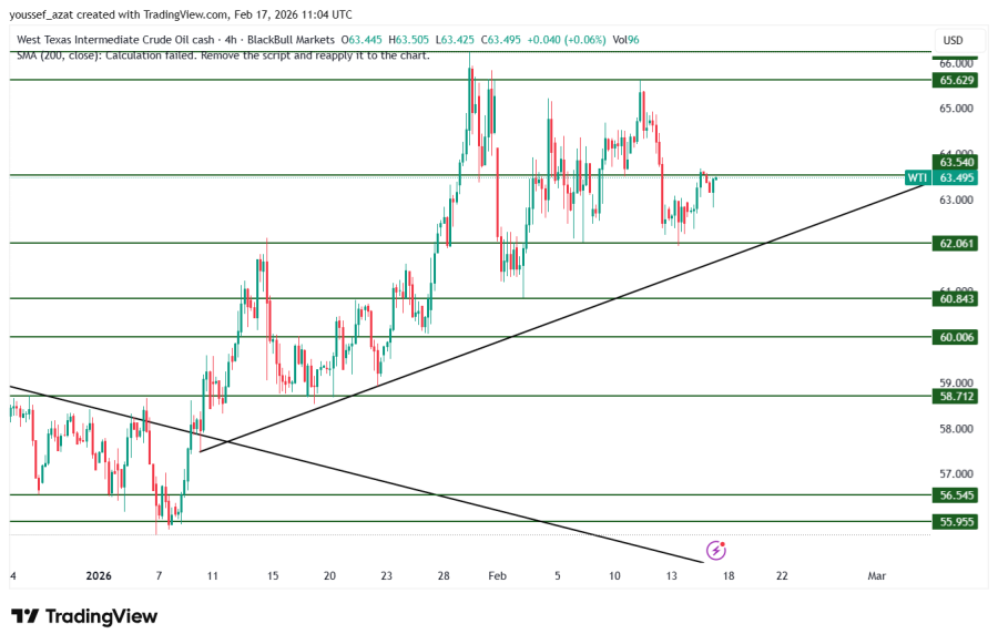 يتحرك النفط في إتجاه صاعد من قاع الشهر الماضي وأعلى متوسط متحرك 200 على فريم الأربع ساعات وفوق مستويات الدعم 62.00