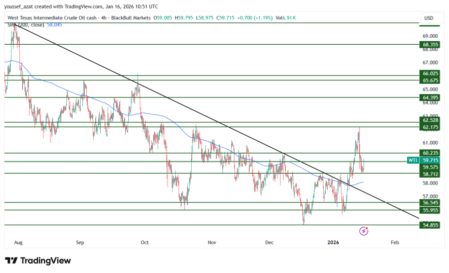 The price is expected to continue rising to levels of 60.00 and then to levels of 62.00.